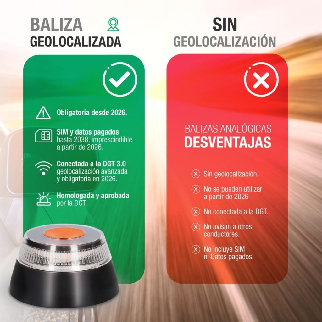 ¿Qué ocurre si mi baliza no está conectada después de 2026? No cumplirás con la normativa vigente y podrías enfrentarte a sanciones en caso de control. Por eso se recomienda adquirir directamente modelos conectados.