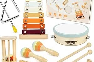 Instrumentos musicales básicos: Como tambores o xilófonos de madera.
